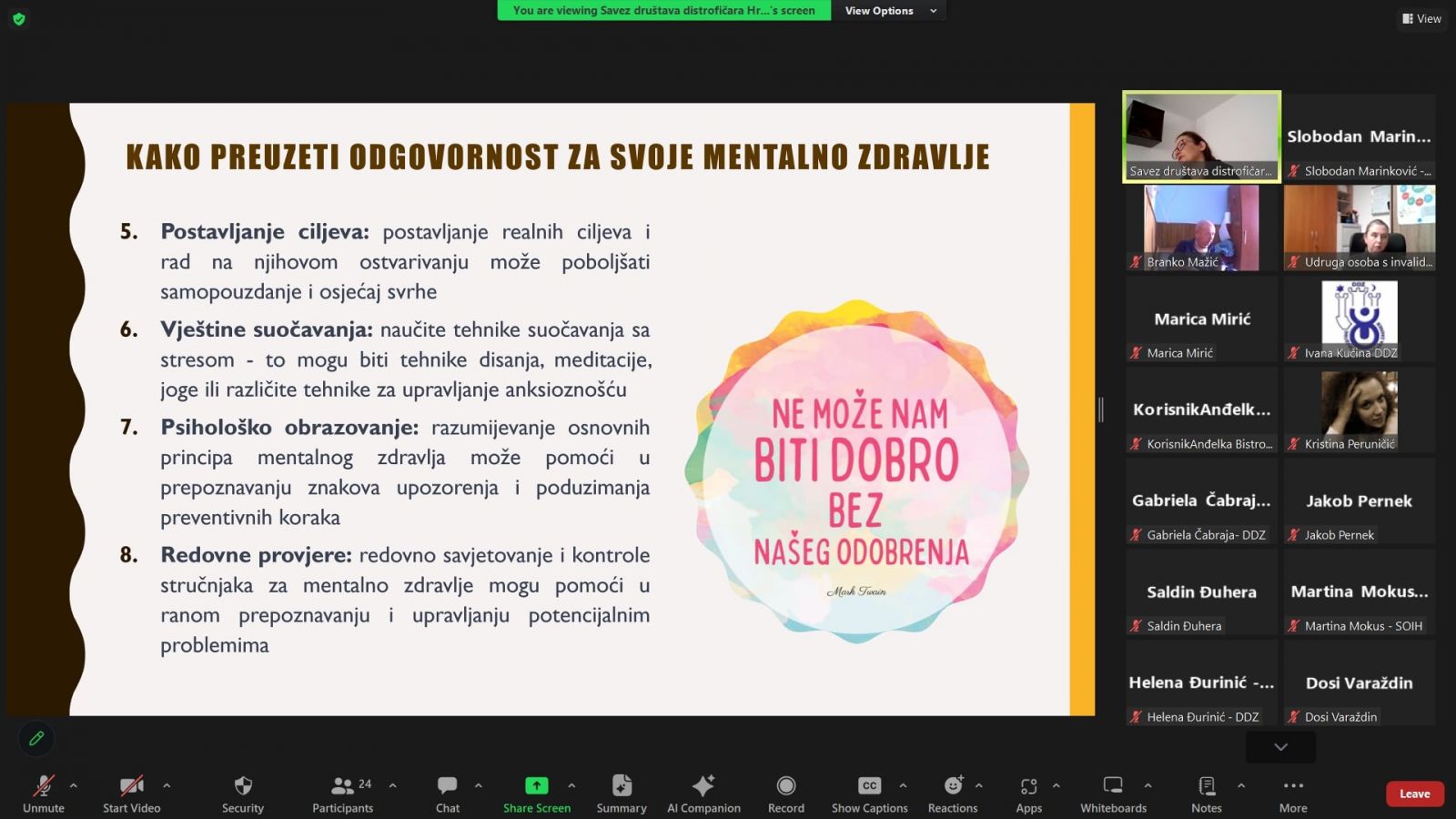 Predavanje i praktične vježbe na temu „Briga o mentalnom zdravlju – moja odgovornost“ održala je Dragana Budimir, psihologinja SDDH.