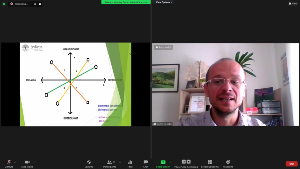 Edukacije o jačanju samosvijesti, motivaciji za obrazovanje i zapošljavanje te samopredstavljanju vodio je psihoterapeut i edukacijski rehabilitator Darko Kobetić, ravnatelj Centra znanja Profectus. Kroz temu jačanje samosvijesti predstavljena je osobna odgovornost, osobine ličnosti te razlika u pojmovima samosvijesti i samopoštovanja odnosno samopouzdanja. Kroz drugu radionicu o motivaciji za zapošljavanje i obrazovanje predstavljeno je što nas to sve potiče na promjenu, koliki je značaj poznavanja osobnih ciljeva, kao i vlastitih potencijala i interesa te su pojašnjene faze motivacijskog ciklusa. Tema zadnje radionice iz ciklusa edukacija bilo je o samopredstavljanje, prilikom čega je naglašeno tko određuje naš život, tko nam stvara sliku o nama samima i koja su to naučena ponašanja iz našega djetinjstva koja uzimamo bez kritičkog razmišljanja, a koja trenutno oblikuju naš život i sliku koju o sebi imamo. Važan dio svake edukacijske radionice bila je rasprava o pitanjima, podjela iskustava i razmišljanja te dani poticaji za postizanjem pozitivnih promjena.
