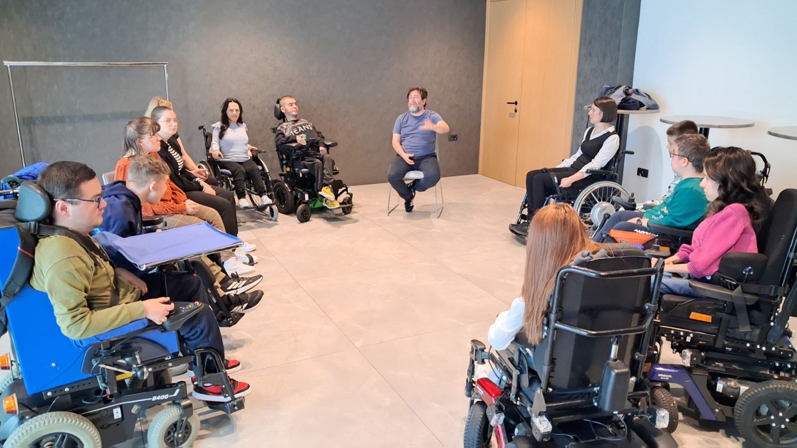 Tijekom rada s roditeljima, mladi su sudjelovali u grupi podrške o korištenju asistivne tehnologije i procjeni potreba za njezinim korištenjem, koju je vodila Ines Delzotto, mag. educ. reh. Sudionici su razmijenili iskustva o mogućnostima primjene asistivne tehnologije u svakodnevnom životu, nakon čega su provedene kratke preliminarne individualne procjene te su mladima dane preporuke za daljnje korištenje odgovarajućih rješenja.