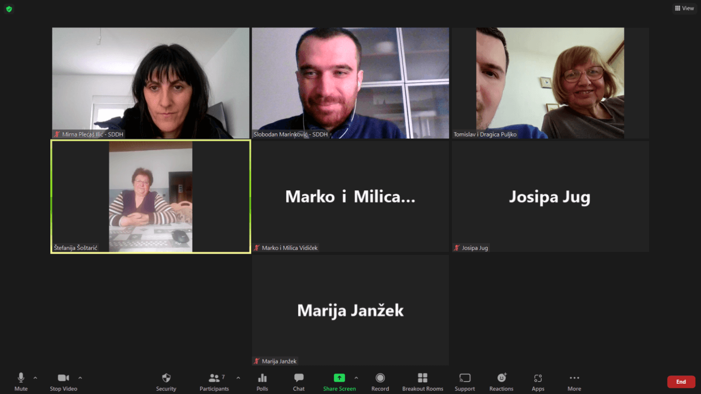 Radionice su provedene putem Zoom platforme. Na radionici za članove obitelji osoba s MD i NMB s područja Požeško-slavonske sudjelovalo je troje, Virovitičko-podravske troje, Krapinsko-zagorske županije petoro te Osječko-baranjske dvoje članova obitelji osoba s MD i NMB.
