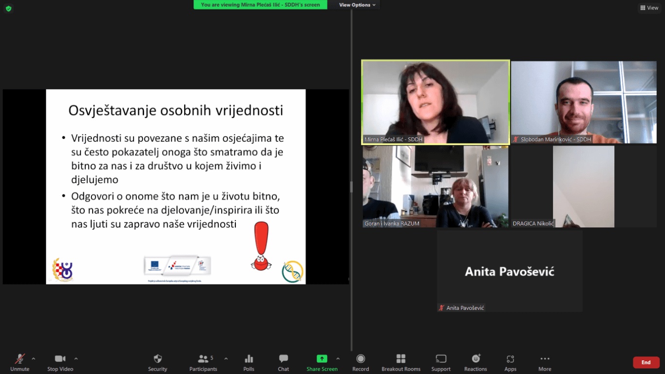U okviru radionice na temu vrijednosti sudionici su govorili o osobama koje ih inspiriraju i zašto, kvalitetama i osobinama koje ih inspiriraju, značenju uspjeha, kao i situacijama i ponašanjima koje ih ljute i frustriraju. Sva ova uvjerenja i stavovi su zapravo vrijednosti koje čine osobnost čovjeka i koje su nešto što svakog djeluje na ponašanje svakog pojedinca odnosno što ga motivira i usmjerava u životu. Stoga je vrijednosti potrebno osvijestiti i razmišljati o njima jer njihovim razumijevanjem razumijemo i sami sebe, ali i druge. Stoga je po njima potrebno živjeti, ali istovremeno dopustiti im da se mijenjaju kad je to potrebno.