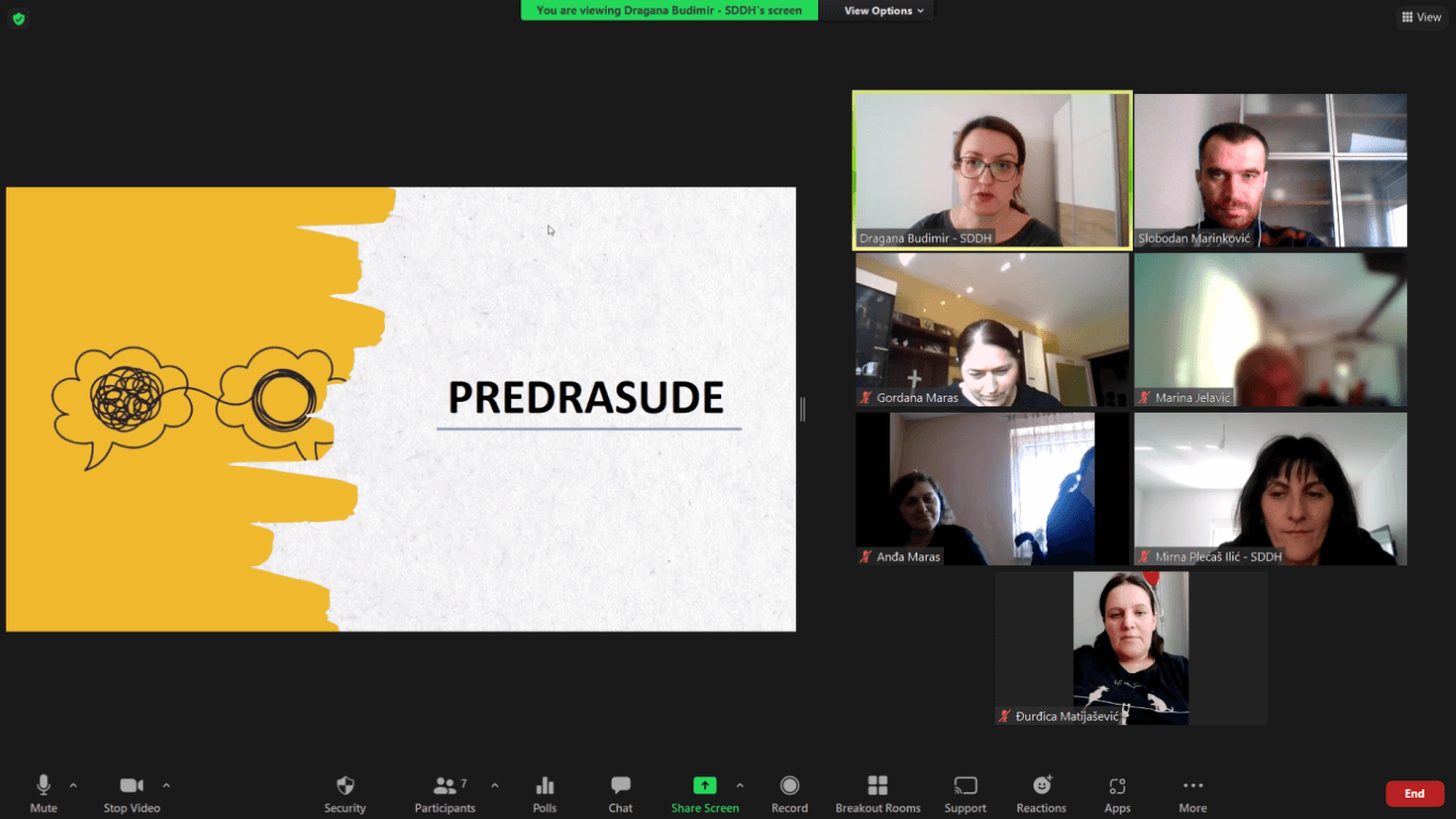 U okviru radionica o predrasudama sudionicima su detaljno objašnjene razlike između pojma predrasude i pojmova stereotipi, stigmatizacija i diskriminacija. Budući da predrasude vrlo često dovode do diskriminacije, predstavljen je Zakon o suzbijanju diskriminacije kojim se osigurava zaštita i promicanje jednakosti kao najviše vrednote ustavnog poretka Republike Hrvatske i stvaraju pretpostavke za ostvarivanje jednakih mogućnosti za sve eksplicitno uključujući osobe s invaliditetom, ali i osobe s njima povezane rodbinskim vezama. Navedeno je da se diskriminacijom prema ovom Zakonu smatra i propust da se osobama s invaliditetom osiguraju jednake mogućnosti te im je savjetovano da se u borbi za svoja i prava svojih članova obitelji s MD pozivaju i na Zakon o diskriminaciji. Na kraju ovog dijela radionica provedene su vježbe Euroželjeznica „A la carte“. Tijekom vježbi sudionici su poveli detaljne debate, a zaključeno je kako svi imamo sklonost određenim stereotipnim razmišljanjima, zaključivanjima pa čak i predrasudama, ali da to nikako ne smije dovesti do stigmatizacije i diskriminacije.