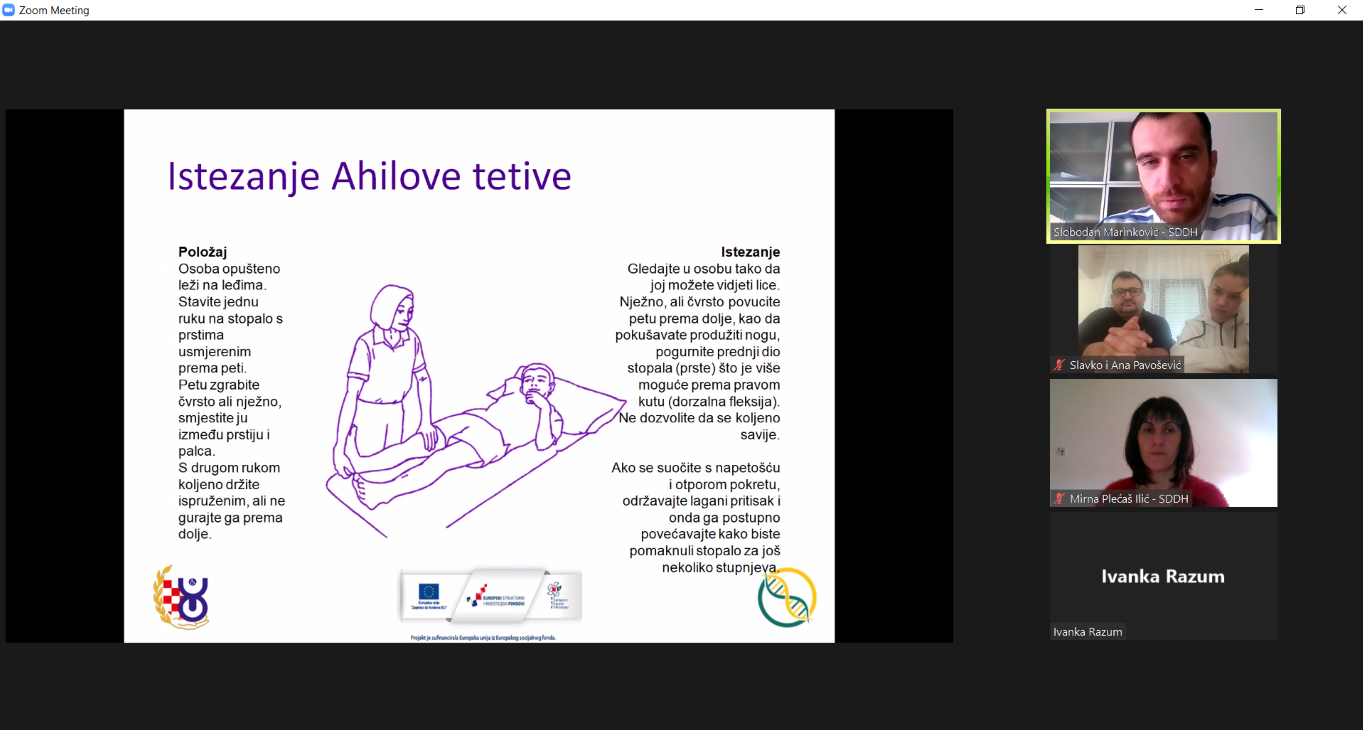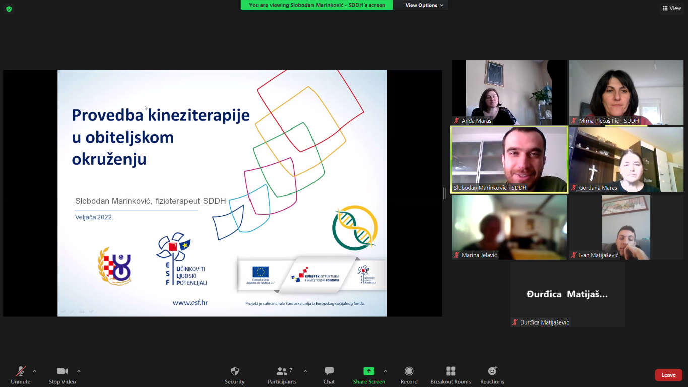 Radionice su održane u nastavku na radionice za osobe s MD, provedene su putem Zoom platforme za osobe s područja Virovitičko-podravske (8. veljače, sudjelovalo troje članova obitelji), Požeško-slavonske (9. veljače, sudjelovalo četvoro članova obitelji) i Osječko-baranjske županije (11. veljače, sudjelovala dva člana obitelji), dok je radionica za osobe s područja Krapinsko-zagorske županije provedena uživo, u prostorijama Udruge distrofičara krapina u Gornjem Jesenju, 10. veljače (sudjelovalo četvoro članova obitelji).