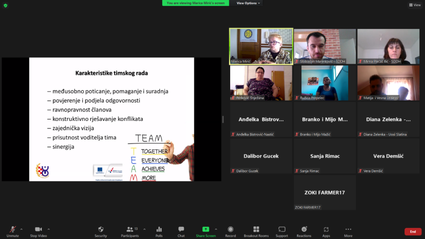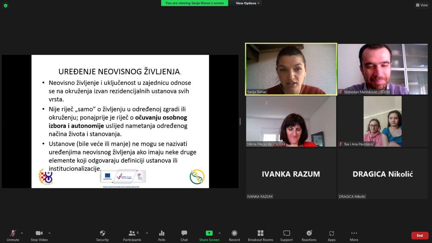 Radionice su provedene putem Zoom platforme. Na radionici za članove obitelji osoba s MD i NMB s područja Požeško-slavonske županije sudjelovalo je dvoje, Virovitičko-podravske šest, Osječko-baranjske troje te Krapinsko-zagorske pet članova obitelji osoba s MD i NMB.
