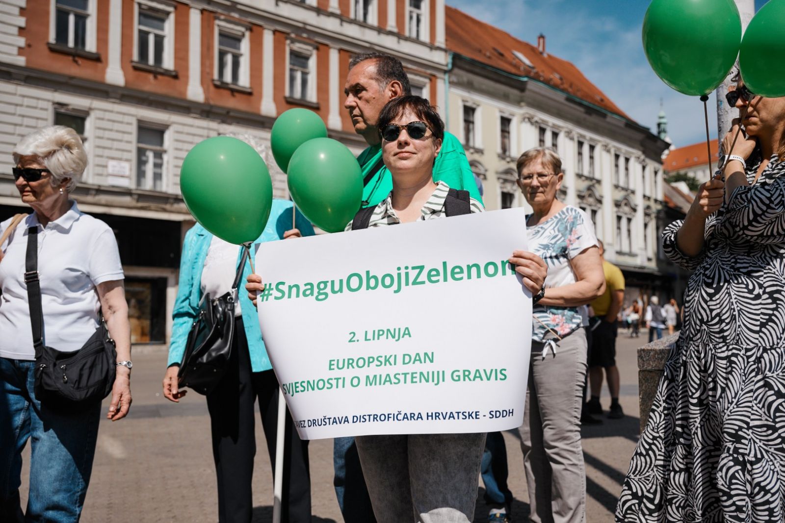 Savez društava distrofičara Hrvatske organizirao je simboličnu šetnju u utorak, 2. lipnja, pod geslom #SnaguObojiZelenom povodom Europskog dana svjesnosti o miasteniji gravis, rijetkoj neuromuskularnoj bolesti s kojom se u Hrvatskoj svakodnevno bori oko 600 osoba.